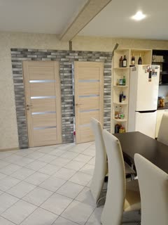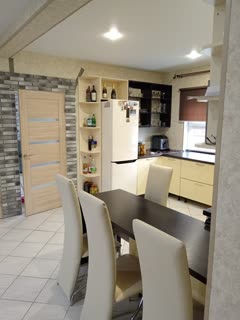 Дом состоит из 3 изолированных комнат, кухни - гостиной 40м2, совмещённого санузла и гаража.